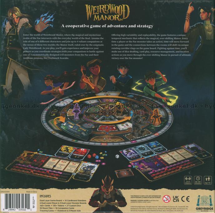 Weirdwood Manor er et spennende strategispill som tar spillerne med inn i en mystisk verden fylt med magi og fare. I spillet må 1-5 spillere samarbeide for å beskytte Lady Weirdwood og beseire de farlige Fae-monstre som truer herregården. Hver spiller velger en unik helt med spesielle evner og jobber sammen for å utforske herregården, bekjempe monstre og løse gåter.
