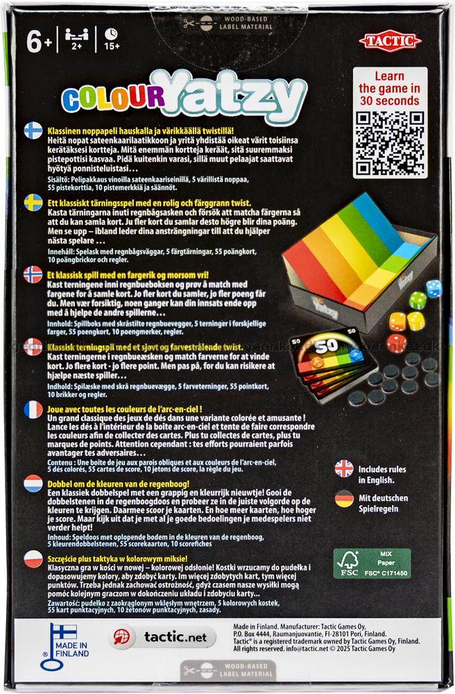 Yatzy: Colour er en fargerik tolkning av det klassiske terningspillet, hvor kjente Yatzy-elementer får nytt liv. Spillet utspiller seg i en spesiell regnbueeske, der fargene spiller en sentral rolle og gjør hver tur både spennende og uforutsigbar. Når terningene kastes, oppstår det små øyeblikk av håp og forventning, mens man prøver å lage de kombinasjonene som gir tilgang til verdifulle poengkort.
